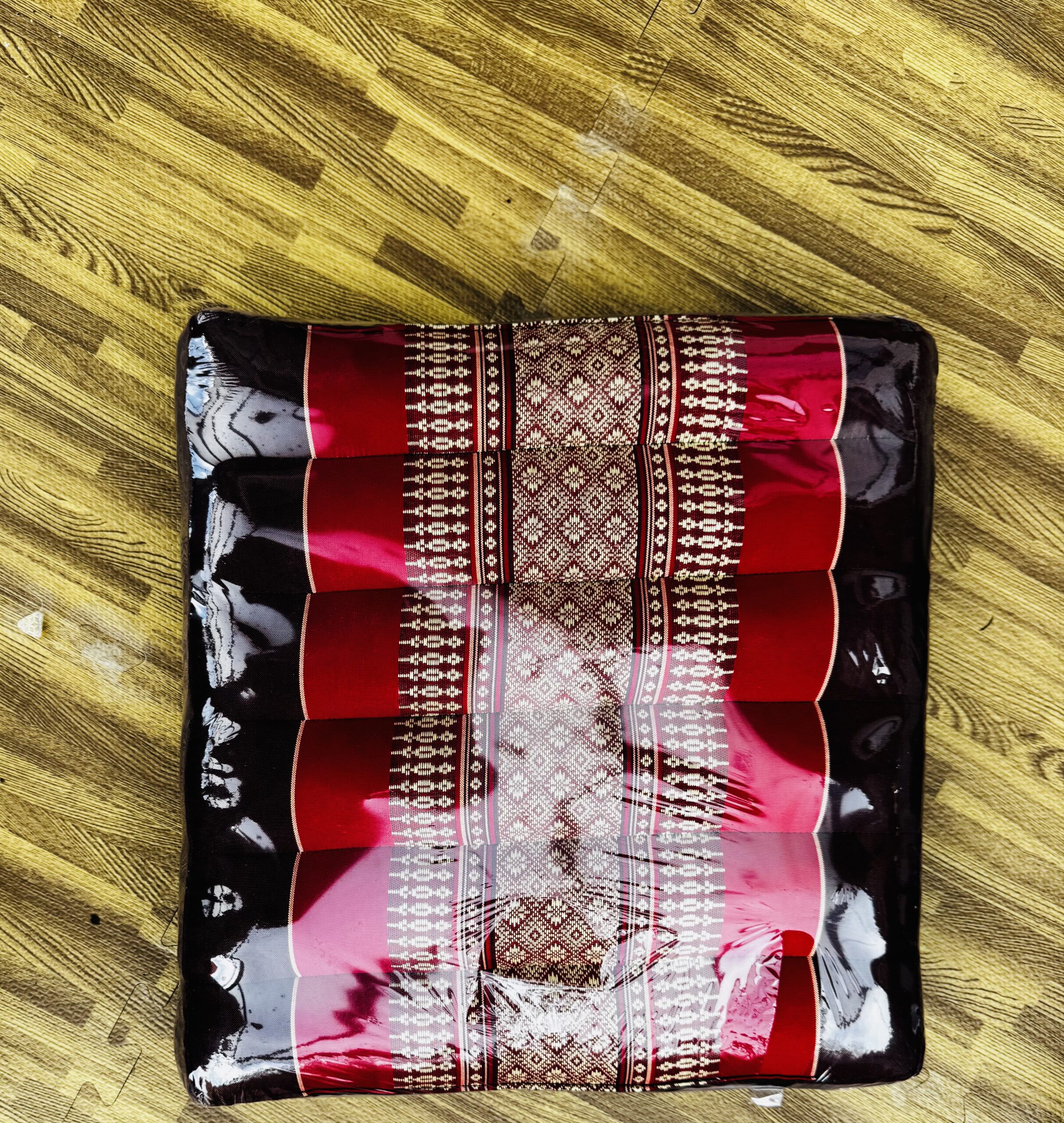 The square design makes it versatile for many uses – from a meditation seat to a casual floor cushion for living spaces, therapy rooms, or wellness studios. The vibrant red fabric adds a warm, traditional aesthetic inspired by Thai craftsmanship, making it both functional and decorative.